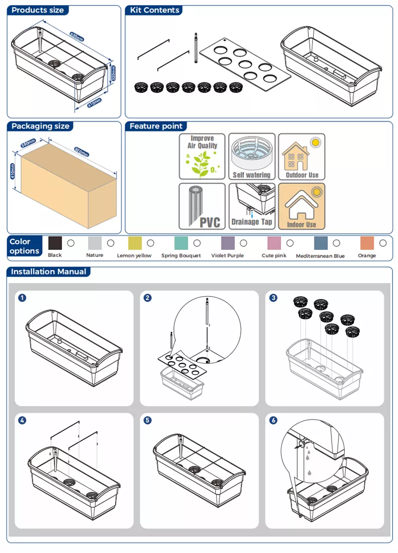 Watex può fornirti questa piallatrice autoirrigante da 30 litri. Ha una capacità extra-large, che può soddisfare le esigenze quotidiane di semina di piante di grandi dimensioni. La funzione intelligente di risparmio idrico può prevenire il marciume radicale. Può essere utilizzato sia all'interno che all'esterno.