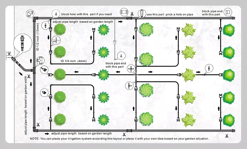 Il kit di irrigazione a goccia tutto in uno per giardinieri ti aiuta a costruire il tuo sistema di irrigazione, i kit di irrigazione a goccia sono una soluzione efficiente e di risparmio idrico per le esigenze agricole, orticole e di giardinaggio domestico. Forniscono acqua direttamente alle radici delle piante, riducendo al minimo gli sprechi e massimizzando la salute delle piante.
