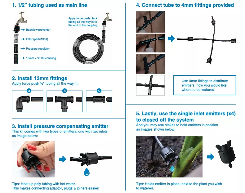 Installazione semplice: progettata per la configurazione fai-da-te con tubi flessibili, emettitori e connettori.