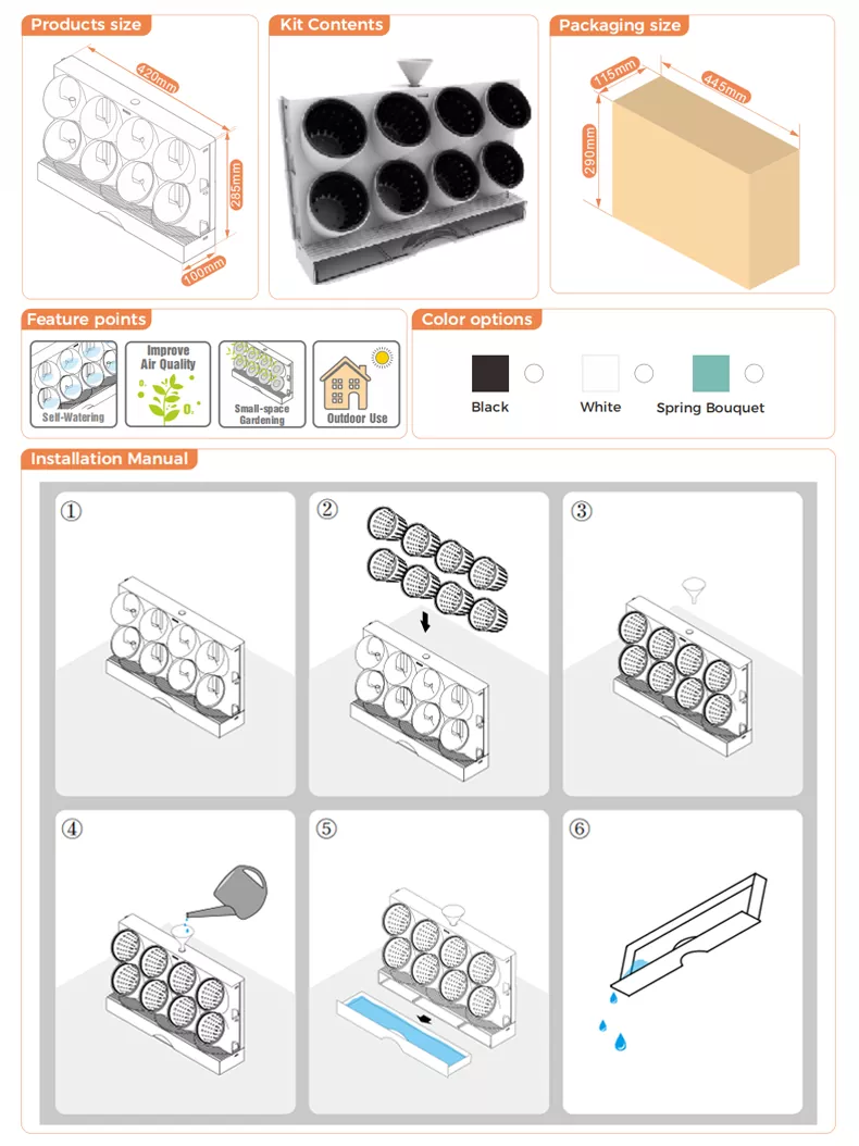 Kit Pixel-Garden 42*28,5*10 cm, vaso interno da 3 pollici*8, imbuto*1, borsa ordinata*8