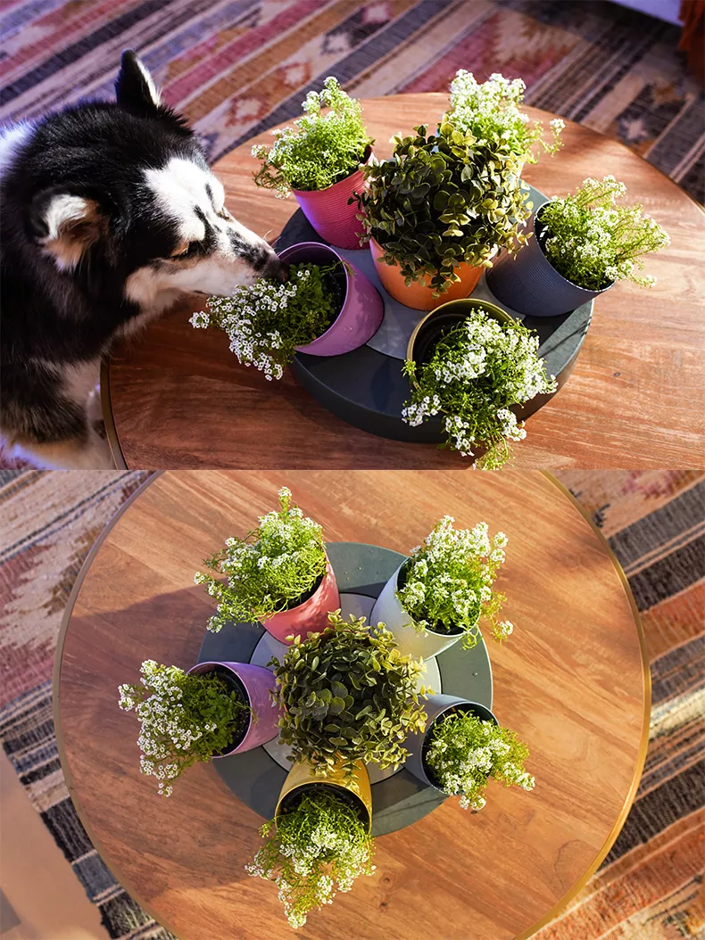 La fioriera al centro del tavolo permette di aggiungere piante o erbe aromatiche