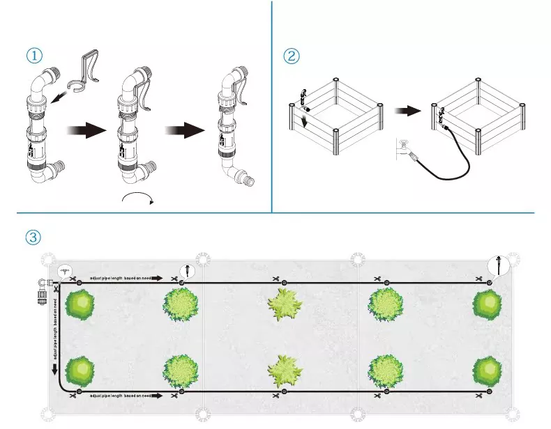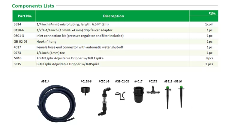L'intero set di accessori è ben assortito, il tubo in PVC da 4 mm si adatta perfettamente ai raccordi a tre vie e all'adattatore. Una volta inserito, viene fissato in posizione senza la necessità di nastro in PTFE o foratura aggiuntiva. La lunghezza della tubazione di 2 metri è perfetta per la maggior parte dei letti di semina domestici. Che si tratti di piantagioni su fila singola o di piantagioni zonate su più file, con il collettore a tre vie i gocciolatori possono essere installati dove vuoi, l'intero sistema di irrigazione può essere realizzato in mezz'ora.