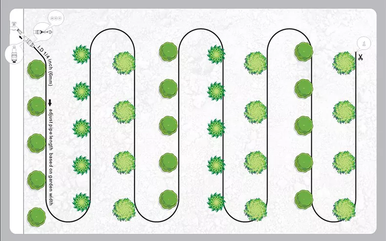 Questo tubo gocciolante da giardino è ideale per prati, orti, aiuole e altre aree coltivate, particolarmente adatto per l'irrigazione di precisione delle piante coltivate in filari.