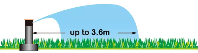 Teste di irrigazione ad angolo regolabile e fisso con una portata massima di spruzzo di 3,6 metri.