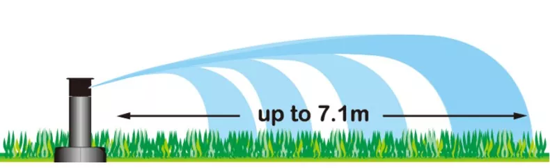 Teste irrigatrici rotanti con una portata massima di spruzzo di 7,1 metri.