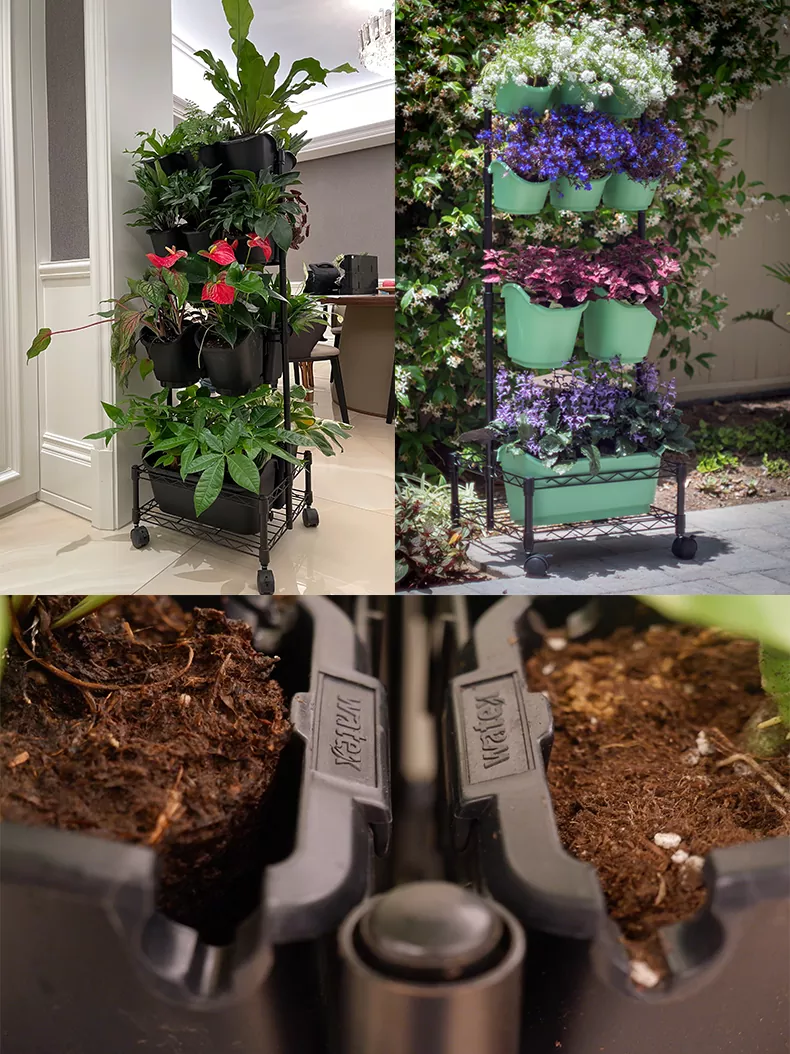 Perfetto per la vita urbana, il nostro doppio telaio mobile da parete verde in metallo è il tuo amico per tutte le tue esigenze di giardinaggio urbano. La portabilità di questa fioriera multilivello con un sistema di irrigazione completo la rende ideale per il giardinaggio salvaspazio. Coltiva le tue erbe, verdure o fiori preferiti o aggiungi alcune piante purificatrici per purificare l'aria nella tua casa e spostarle ovunque tu vada.