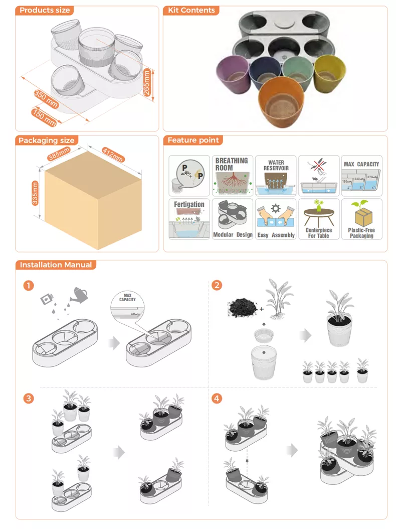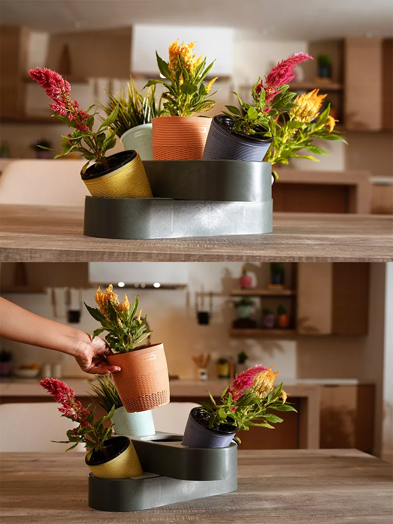 Impila le due basi per la conservazione dell'acqua in modo incrociato, quindi posiziona i vasi da fiori al loro interno. Realizzato con materiali plastici di paglia di grano ecologici e di alta qualità, il kit da giardino impilabile Watex non è solo elegante ma anche resistente e duraturo. Il Desktop Garden impilabile è incredibilmente facile da configurare e costituisce un'ottima aggiunta a qualsiasi casa.