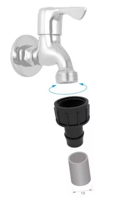 Adattatore per rubinetto da 3/4" con portagomma da 19 mm